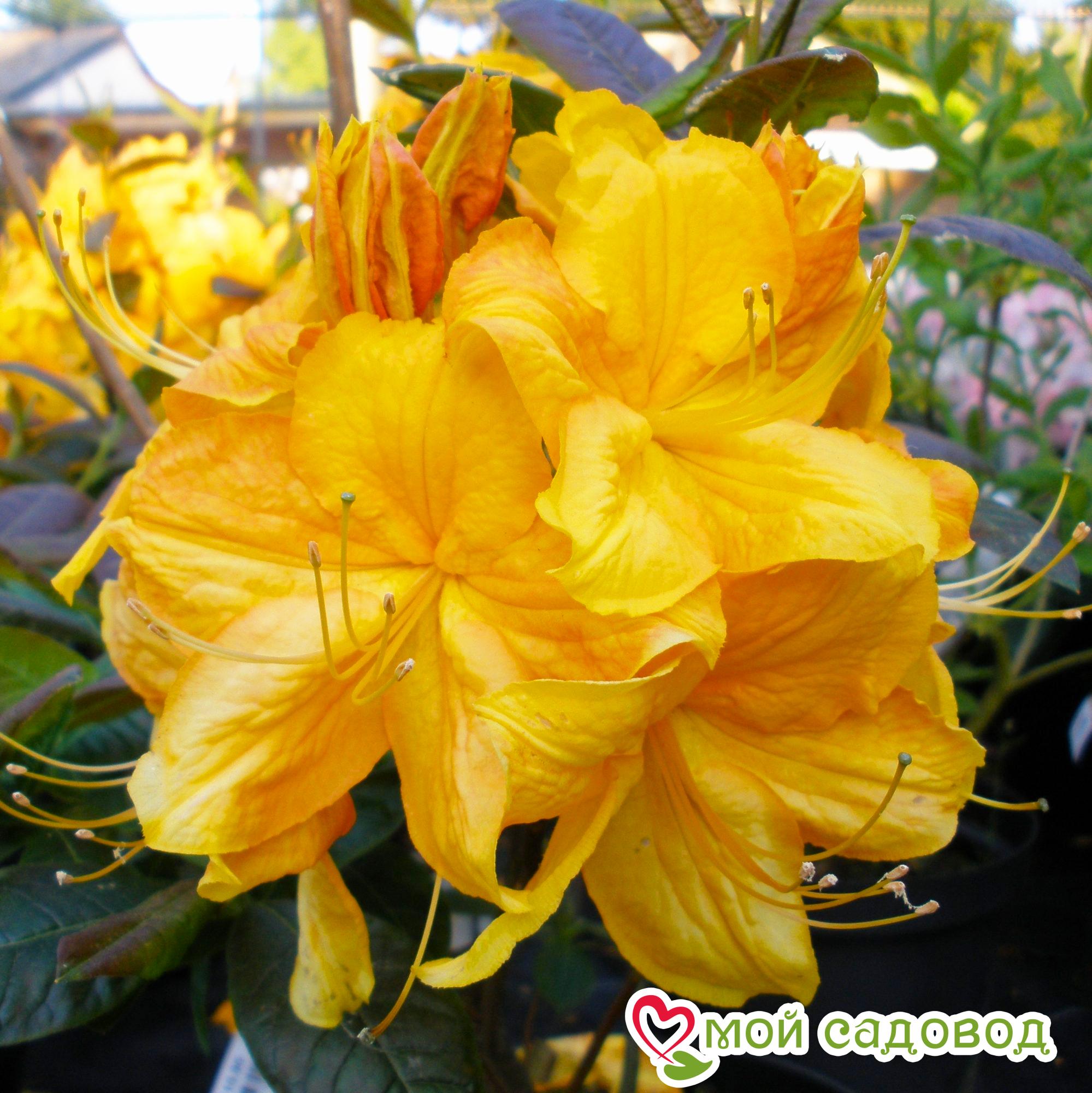 Осенняя окраска листьев оранжево-желтая. Бутоны оранжевые. Цветы золотисто-желтые, яркие, крупные, в форме чаши, с ярким ароматом. Рододендрон листопадный «Klondyke» цветет до распускания листьев. Предпочитает слабокислые почвы, солнце и полутень. Цветет очень обильно.